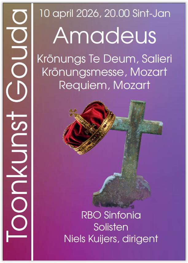 Toonkunst Gouda verzorgt dit voorjaar een "Weens" concert met werken van tijdgenoten Antonio Salieri en Wolfgang Amadeus Mozart. We hebben dit concert de titel "Amadeus" gegeven naar Mozart's tweede voornaam, maar ook verwijzend naar de beroemde film "Amadeus" uit 2004 naar een theaterstuk uit 1984. De film gaat over het leven van componist Wolfgang Amadeus Mozart en de invloed van de Italiaanse componist Antonio Salieri.